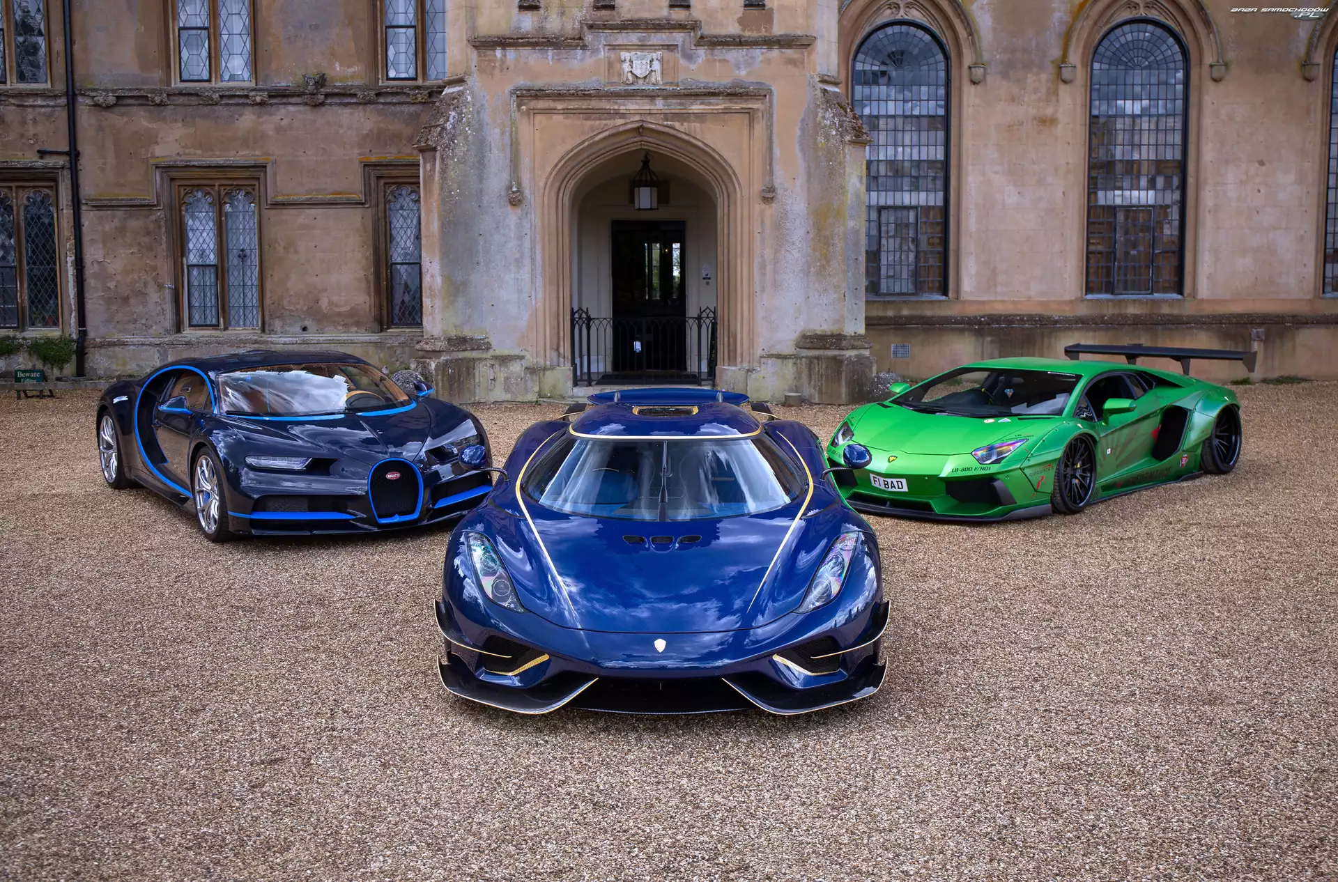 Samochód: Koenigsegg Regera, Bugatti Chiron, Lamborghini Aventador Liberty Walk, Trzy, Samochody