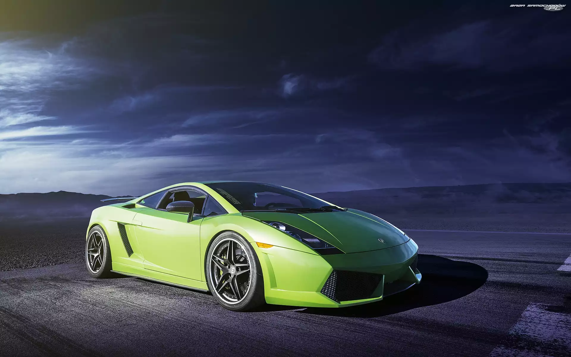 Noc, Góry, Gallardo, Lamborghini, Droga- Zdjęcia samochodów